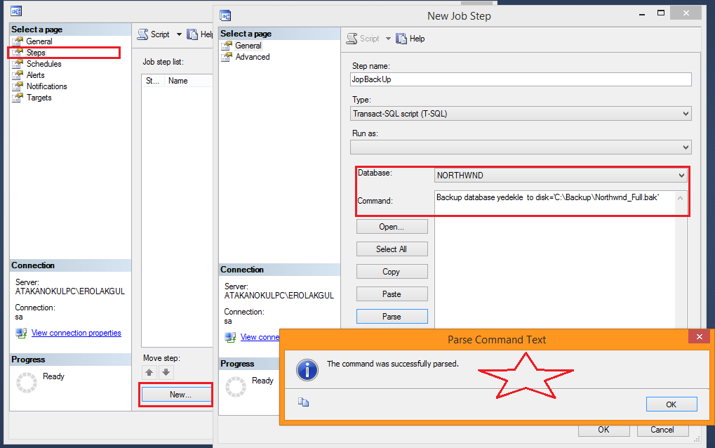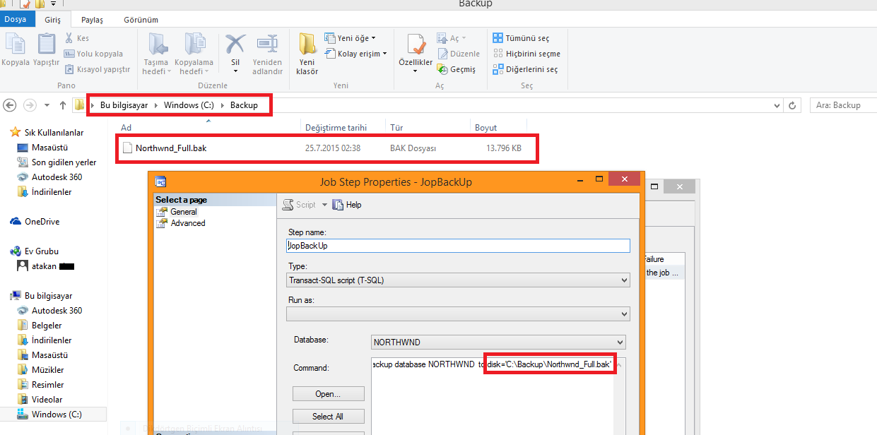 Northwind DB si üzerinde bir backup alma işlemi olacağını belirtyoruz.”OK” diyoruz.