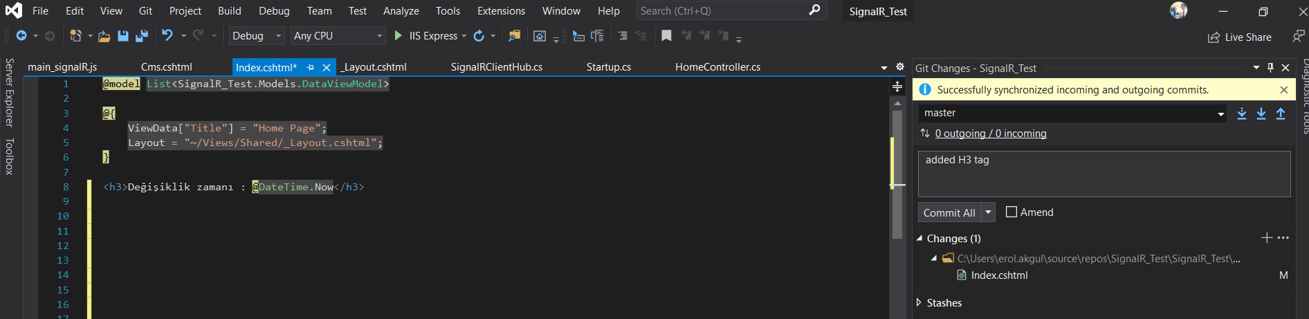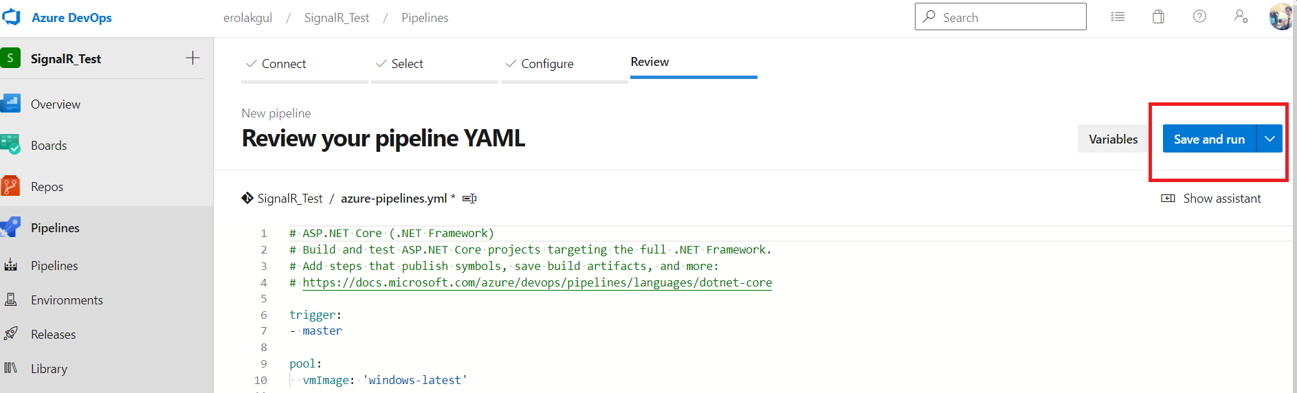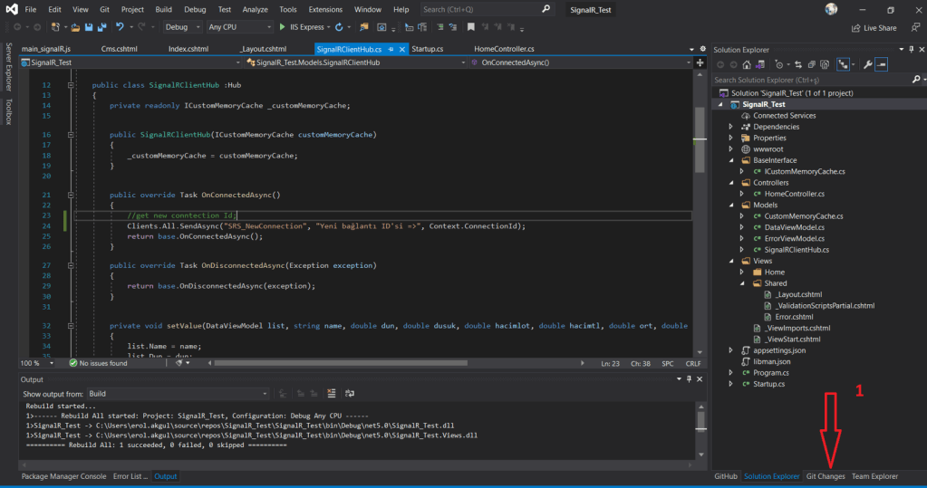 Şimdi ise tamamen code integration ve deployment için deneme yapacağız. Daha önceden dotnet core 2.2 de hazırlanmış bir signal r projesini (ki onun demosunu da bora kaşmer hocadan yapmıştım diye hatırlıyorum) dotnet 5’te tekrar revize edeceğim.