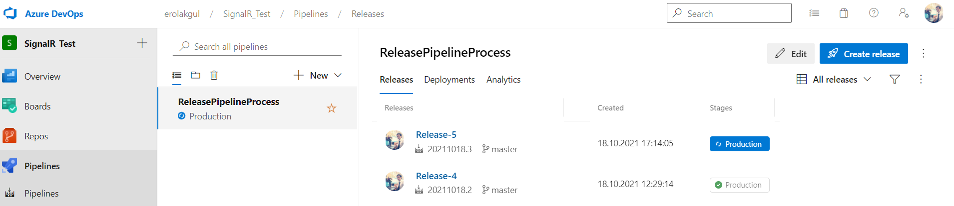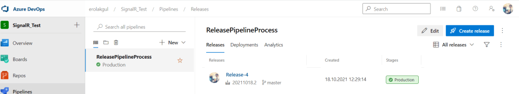 yml dosyasını güncelledikten sonra save & run ile işlemi tamamladığımızda derleme ve release i tamamlanmış olarak,