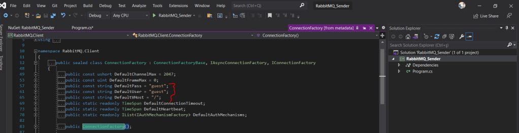 ConnectionFactory methoduna gönderilecek parametrelerle bir nevi connectionString i belirtiyoruz; rabbit mq sunucumuz localhost ta 15672 numaralı portta olduğunu belirtiyorum,