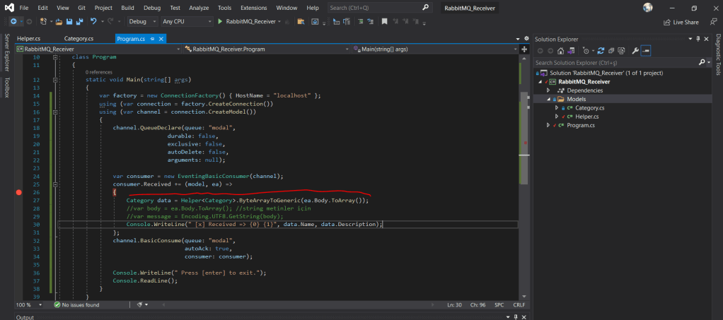 İlk bölümde kurulum ve string mesaj ile kuyruktan veri gönderimi ve alınmasını incelemiştik. Şimdi bir kaç değişiklik yaparak kuyruktan bir model (class) datası göndereceğiz;