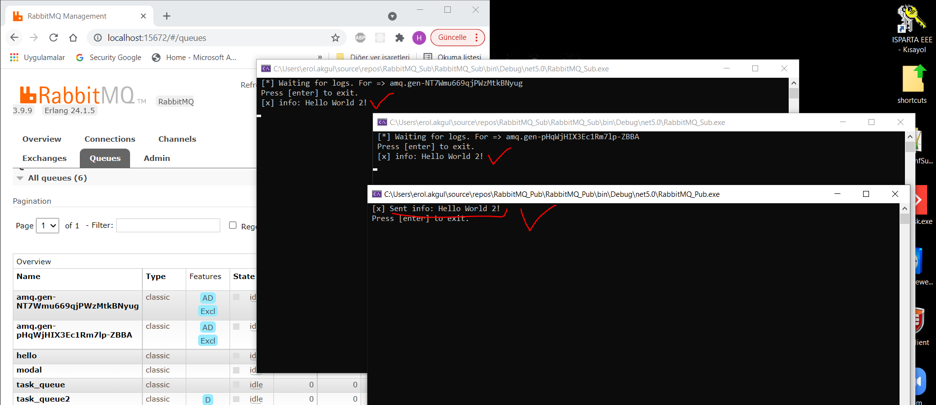 Gönderdiğim mesajın her 2 worker’ıma da ulaştığını görüyorum.