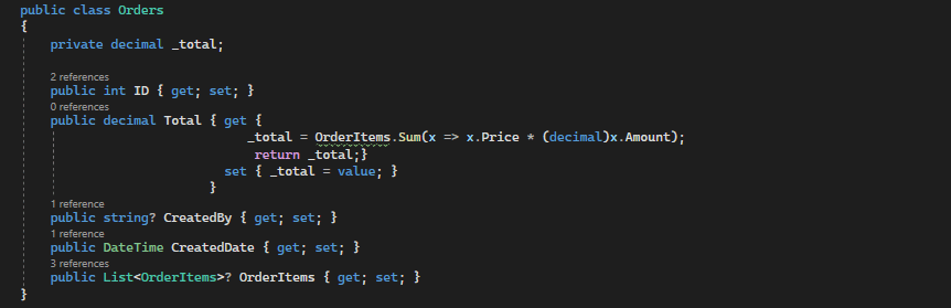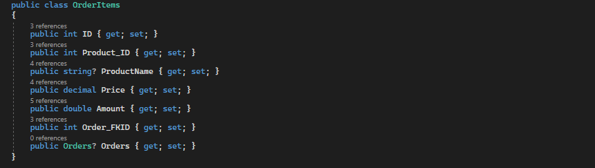 OrderItems class içeriği;