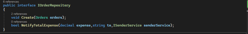 A-) NotifyTotalExpense isimli bir sözleşme daha ekleyip, ISender isimli interface i parametre olarak ekliyoruz.