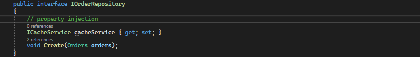 IOrderRepository altına bu yeni oluşturduğum ICacheService interfaci ni bir property sözleşme olarak ekliyorum.