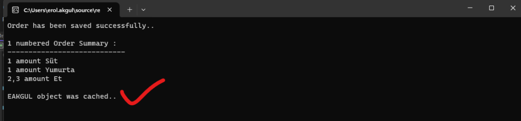 Bu sefer ki senaryo şu şekilde, create aşamasında siparişi geçen kişinin adı cache lenecek, tabi bir şartla 🙂