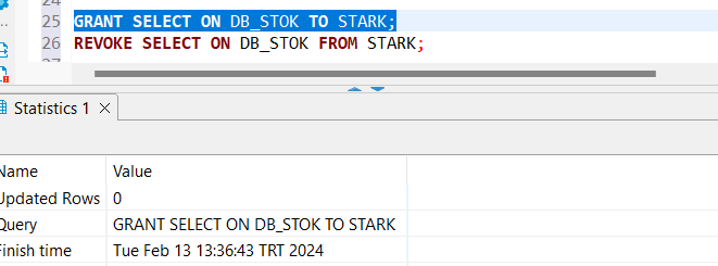 GRANT SELECT ON DB_STOK TO STARK;