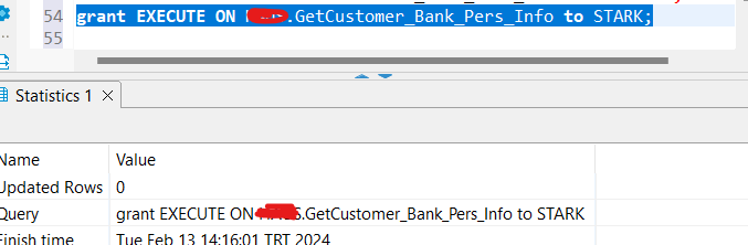 Henüz yetkisi olmadığı için tabloya veya view e erişimi yok görünüyor. Yetkili kullanıcıdan atamayı yapıyoruz;