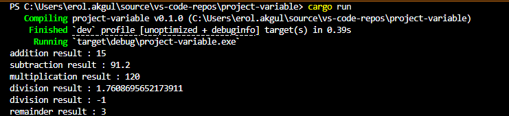 Toplama çıkarma çarpma bölme gibi işlemleri için kullanımlar aşağıdaki gibi olur;