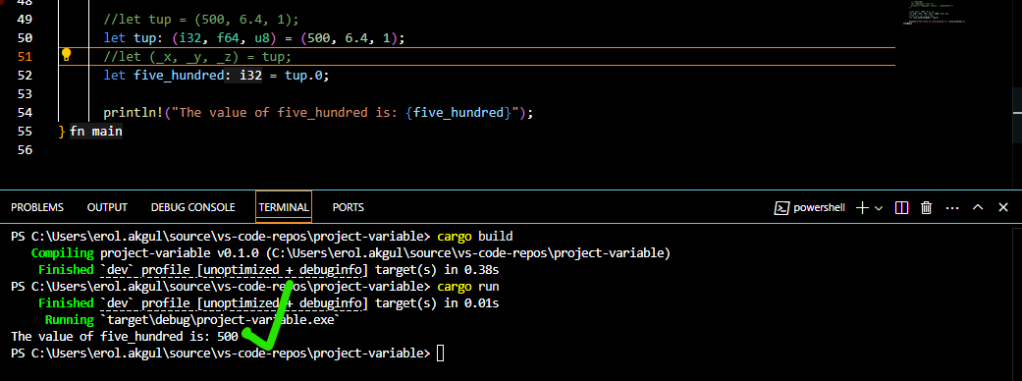 println!("The value of five_hundred is: {five_hundred}");